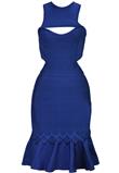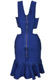 Possui recortes no busto e cintura. Possui zíper na parte de trás.