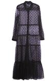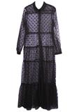 Possui fechamento em botões, feito de tule preto com poá