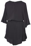 Possui decote em V, fechamento em zíper e manga 3/4. Ombro: 13cm/ Manga: 47cm/ Busto: 134cm/ Cintura: 100cm/ Comprimento: 105cm