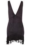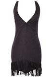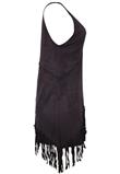 Possui decote V e barra assimétrica com franjas. Ombro: 2cm/ Busto: 96cm/ Comprimento: 82cm