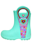 Relevo lateral em corações com detalhes em glitter e alça de apoio.