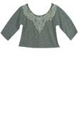 Possui aplicação frontal.Manga: 27cm/ Busto: 60cm/ Comprimento: 37cm