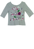 Possui estampa frontal com bordados decorativos.Ombro: 6cm/ Manga: 22cm/ Busto: 62cm/ Comprimento: 36cm