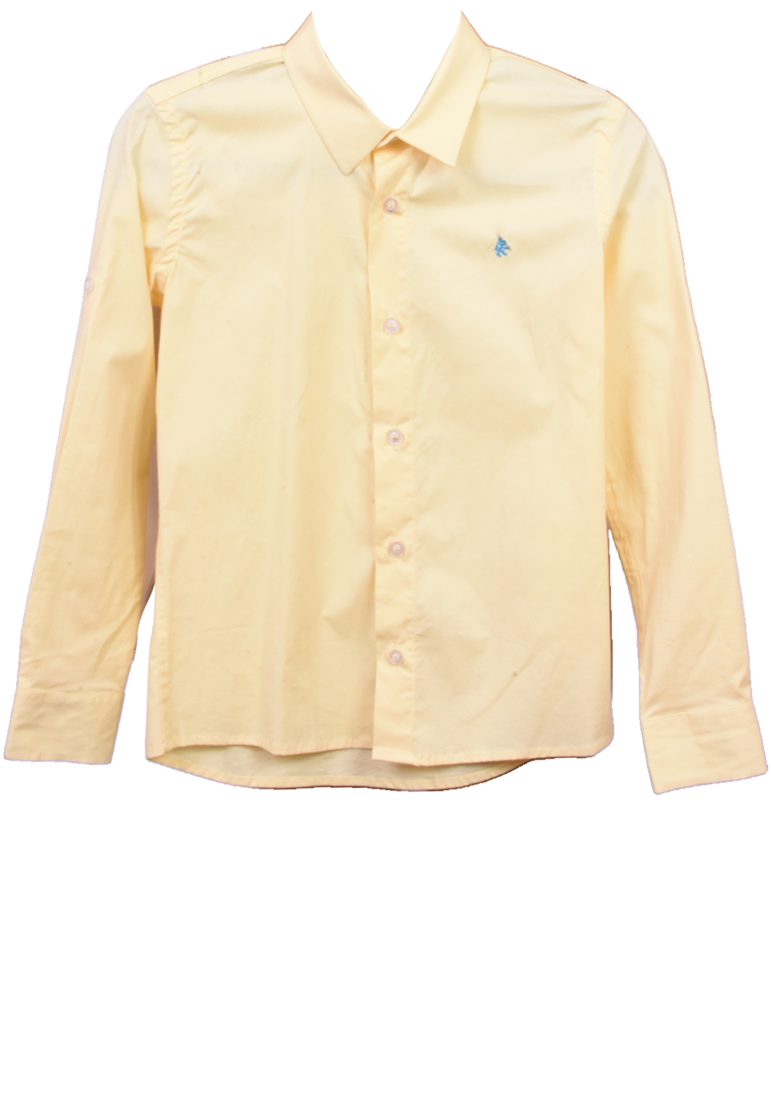 Possui mangas longas e logotipo bordado azul