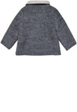 Fecho frontal em botão, possui bolso, acabamento em lã e poliéster, forro em pelo de carneiro sintático.