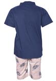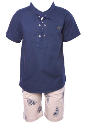 Conunto composto por camiseta e bermuda. Camiseta com detalhe em amarração na gola. Camiseta - Ombro: 7cm/ Manga: 14cm/ Tórax: 64cm/ Comprimento: 46cm. Bermuda - Cintura: 56cm/ Quadril: 62cm/ Gancho: 21cm/ Comprimento: 36cm