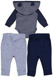 Conjunto possui um body manga longa com fecho por botão e capuz e duas calças.Body: Manga: 25cm/ Tórax: 50cm/ Comprimento: 35cm. Calças: Cintura: 34cm/ Quadril: 50cm/ Gancho: 16cm/ Comprimento: 31cm