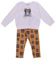 Conjunto composto por calça e blusa. Calça possui cós elástico.