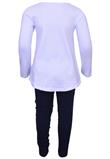 Conjunto composto por blusa e calça. Calça possui cós elástico. Blusa possui detalhe em brilho.
