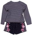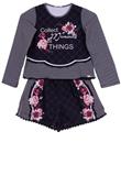 Possui aplicações de brilho na blusa e elástico no cos do short.