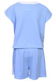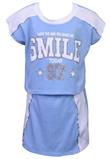 Conjunto composto por blusa e short-saia. Shot-saia possui cós elástico.