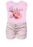 Conjunto composto por blusa e short. Short possui fechamento em zíper e botão.