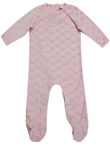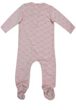 Possui aplique de laço, padronagem de nuvens e fecho por botões de pressão.