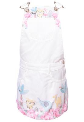 Jardineira Jeans Gabriela Aquarela Jardim Branca