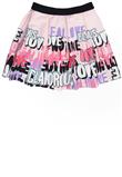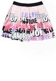 Possui cós elástico, estampa de escritas e forro em short.Cintura: 58cm/ Quadril: 86cm/ Comprimento: 35cm