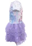 Material em veludo e tule. Ombro: 6cm/ Manga: 9cm/ Busto: 64cm/ Comprimento: 108cm.