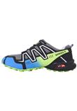 Possui solado de borracha e fechamento por cadarço ajustável.
