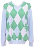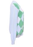 Possui pequena marca de uso na barra, decote V e estampa frontal em jacquard escocês. Ombro: 21cm/ Manga: 75cm/ Tórax: 136m/ Comprimento: 72cm